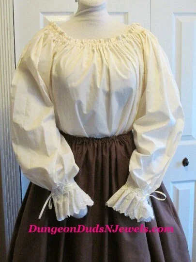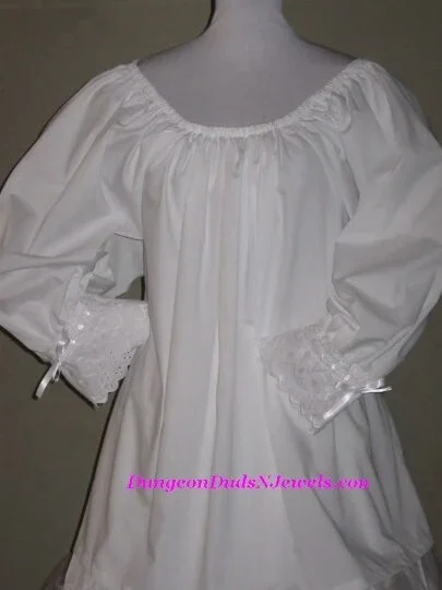 This listing is for the CHEMISE ONLY. Skirts, Bodice, Corset, Jewelry, People, Mannequins, Accessories of any kind are not included. Garb may be photographed over a crinoline, petticoat or hoop skirt which is also not included.