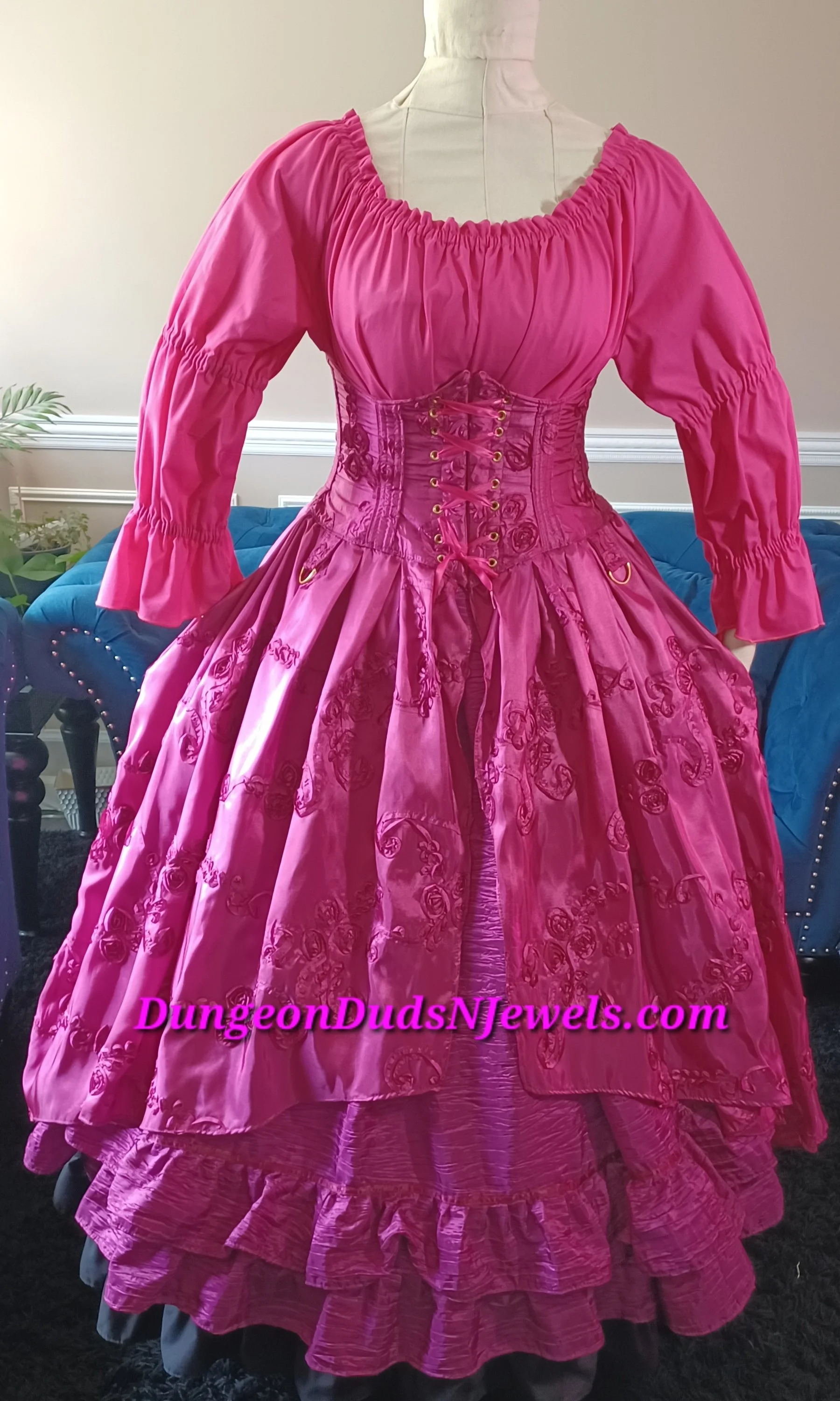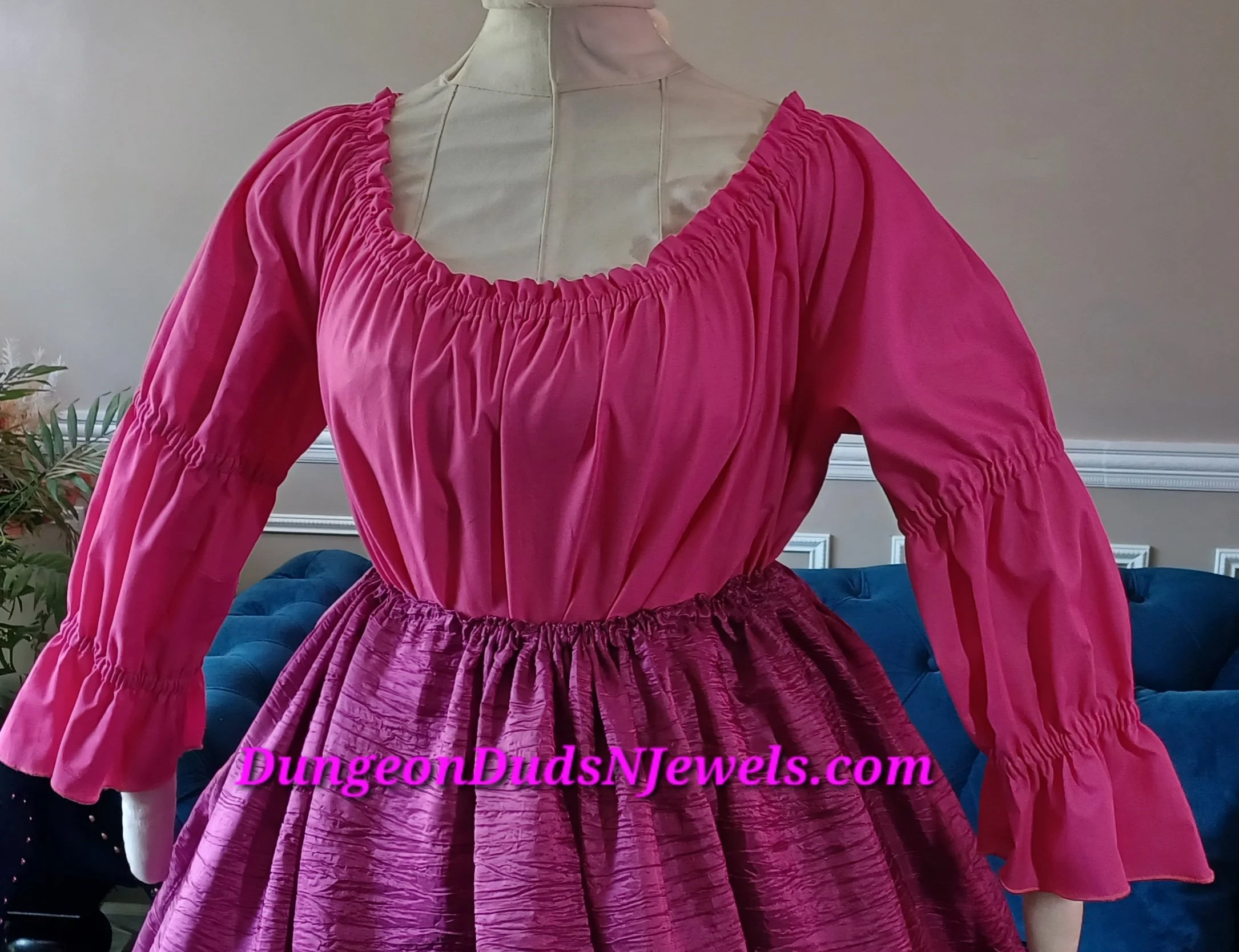 DDNJ Ship Ready Chemise 2 Tier 3/4 Ruffle Cuff Sleeve Magenta Cotton Renaissance Steampunk Witch Pirate