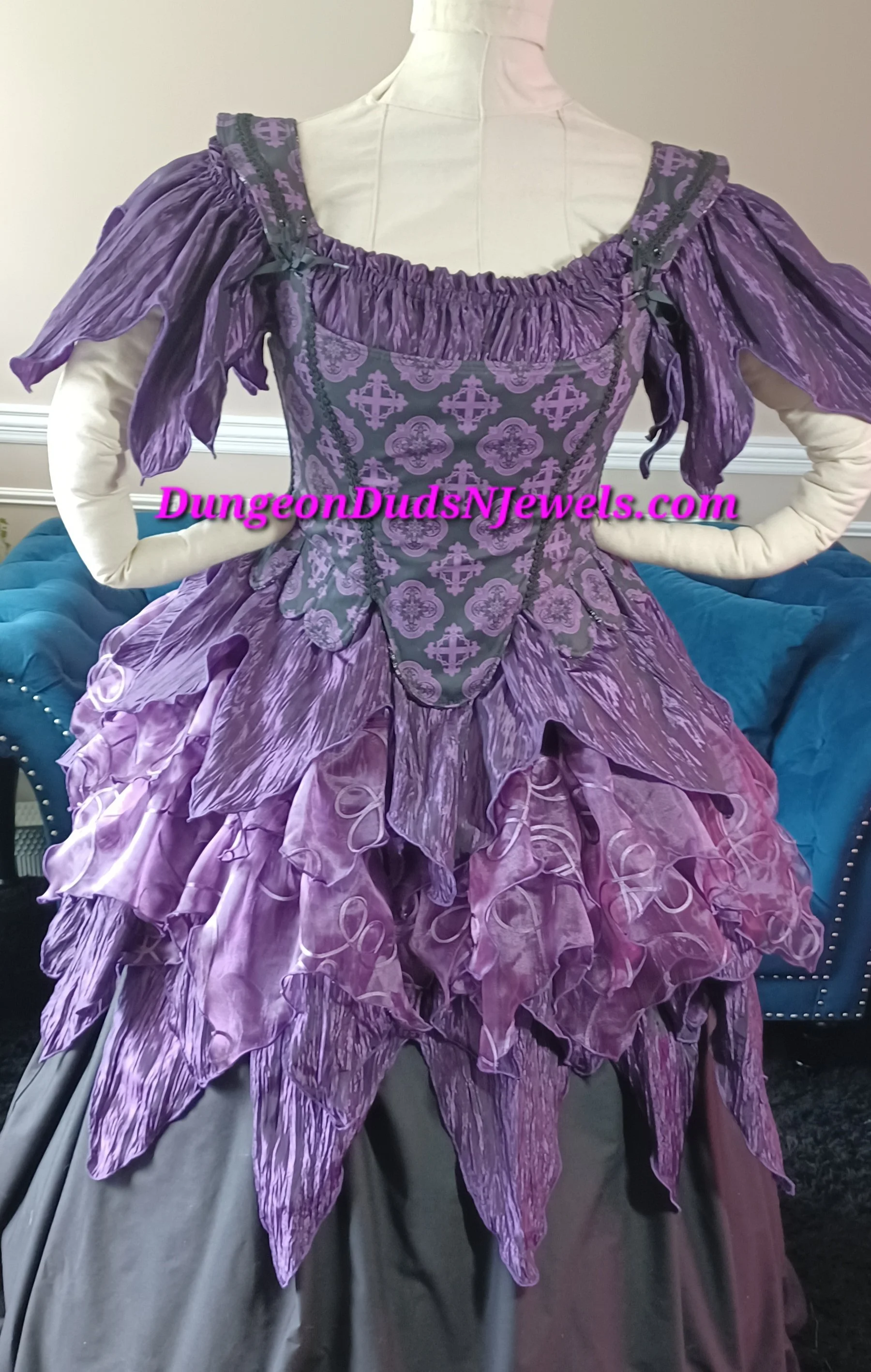 DDNJ Ship Ready Purple Fairy Chemise Petal Hem & Sleeve Taffeta Renaissance Steampunk Witch Pirate