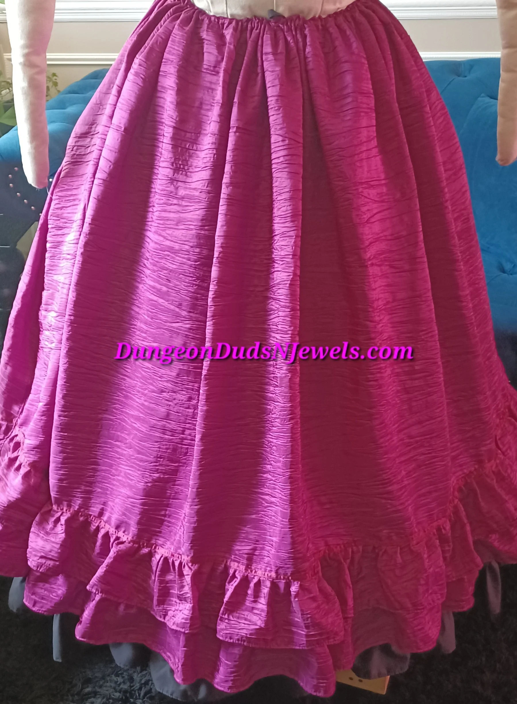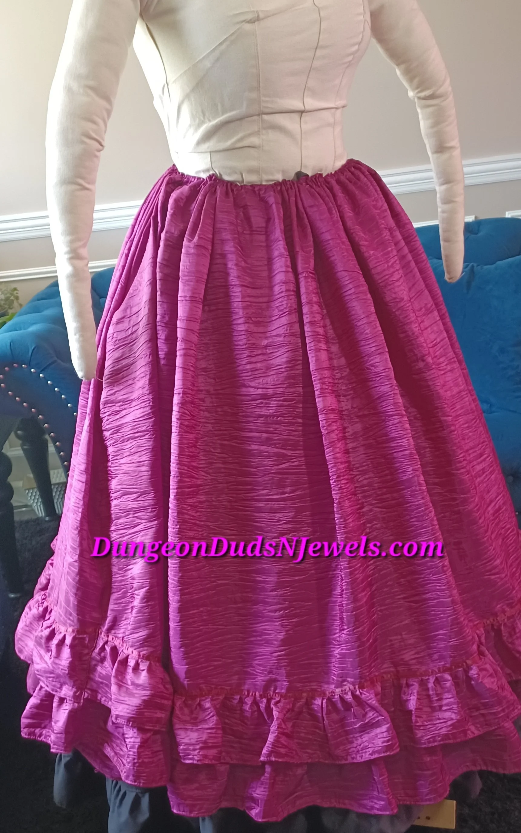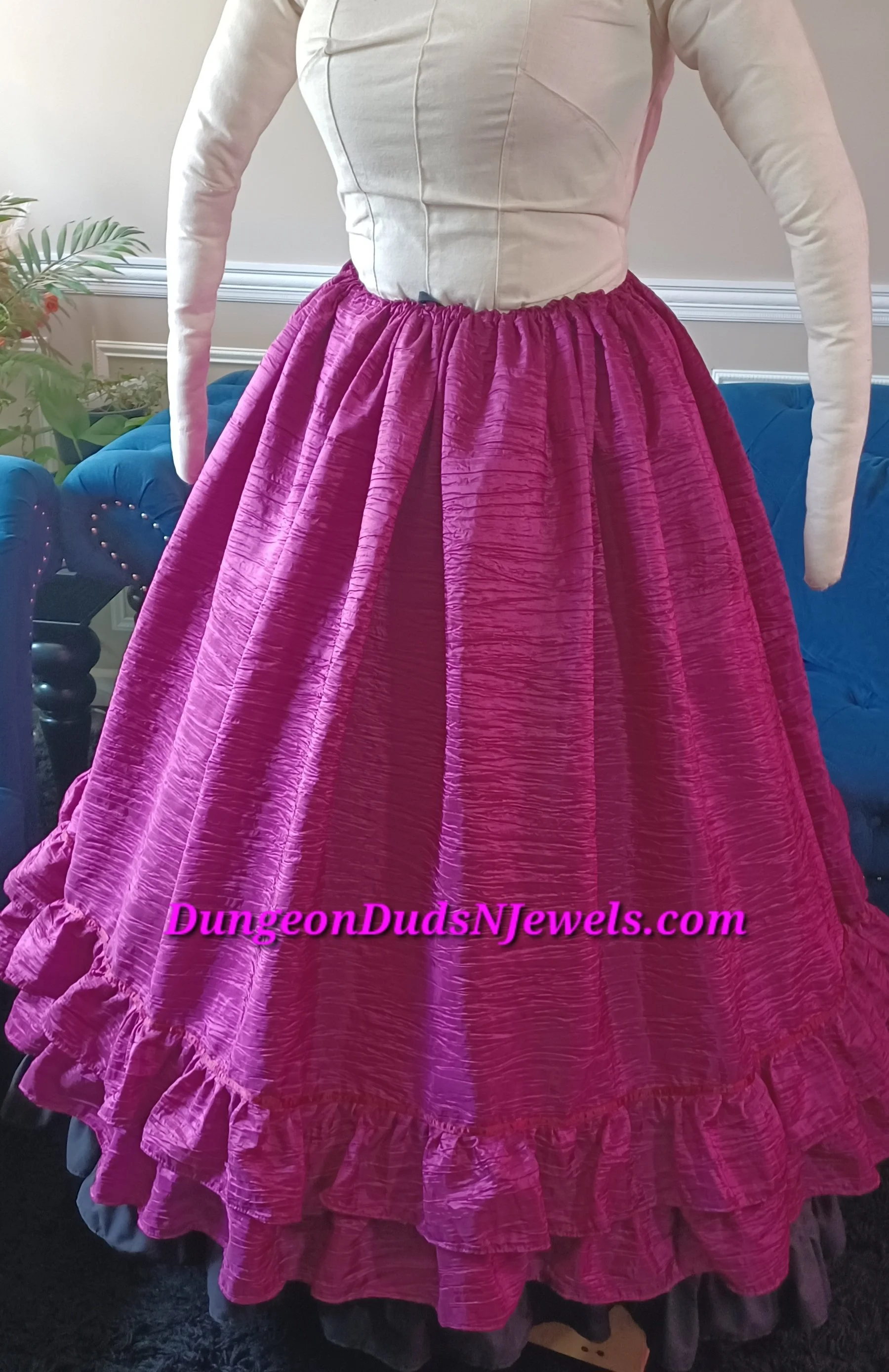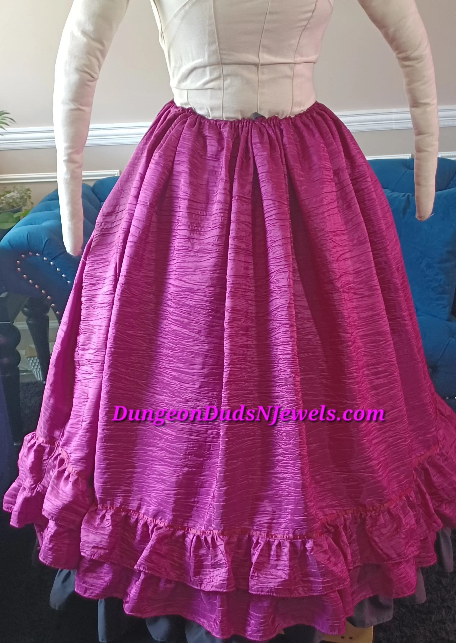 DDNJ Ship Ready Skirt Double Ruffle A-Line Pocket Magenta Crinkle Taffeta Renaissance Steampunk Witch Pirate