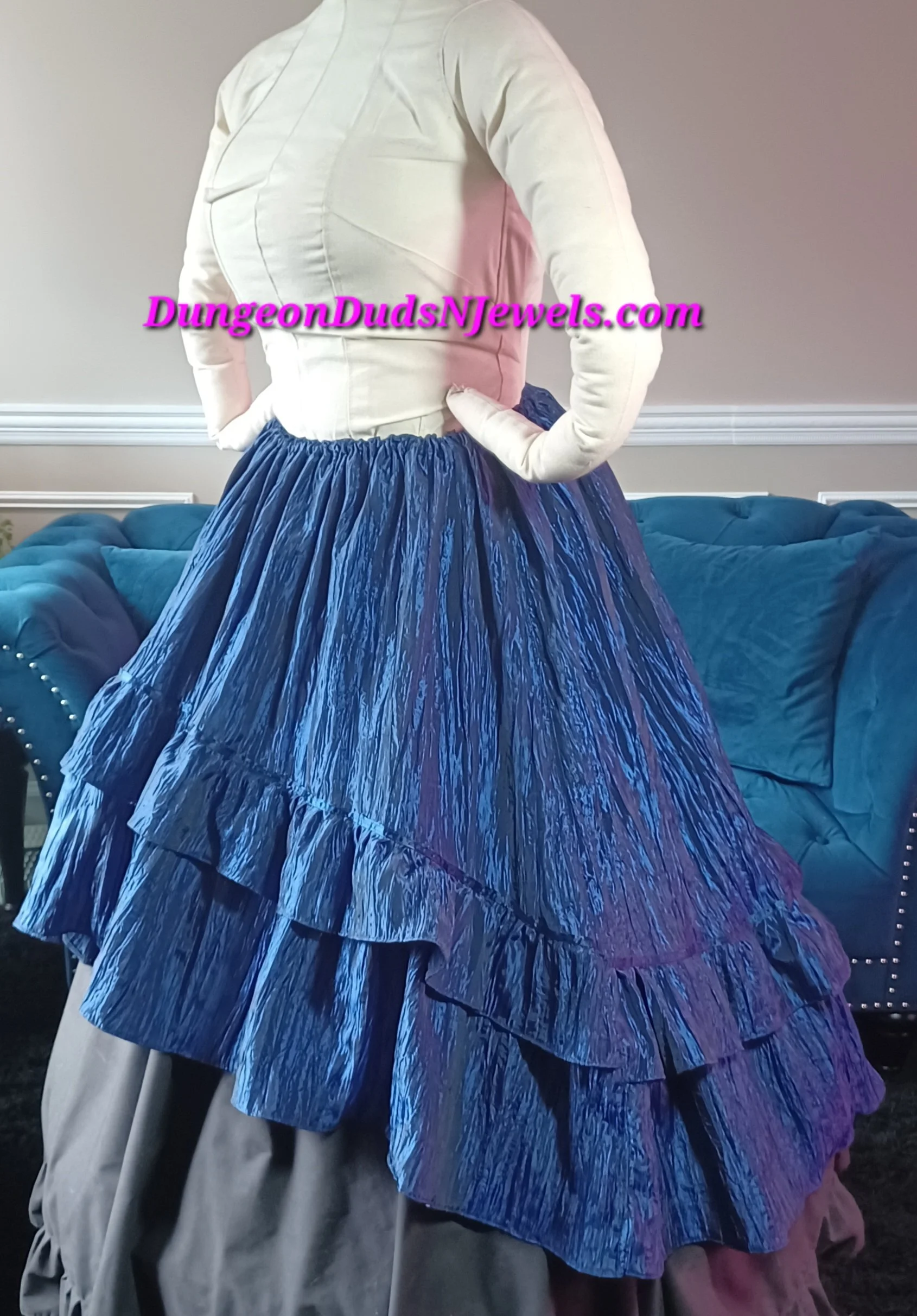 DDNJ Ship Ready Skirt 2 Tier Hi Lo Petroleum Blue Crinkle Taffeta Renaissance Steampunk Witch Pirate